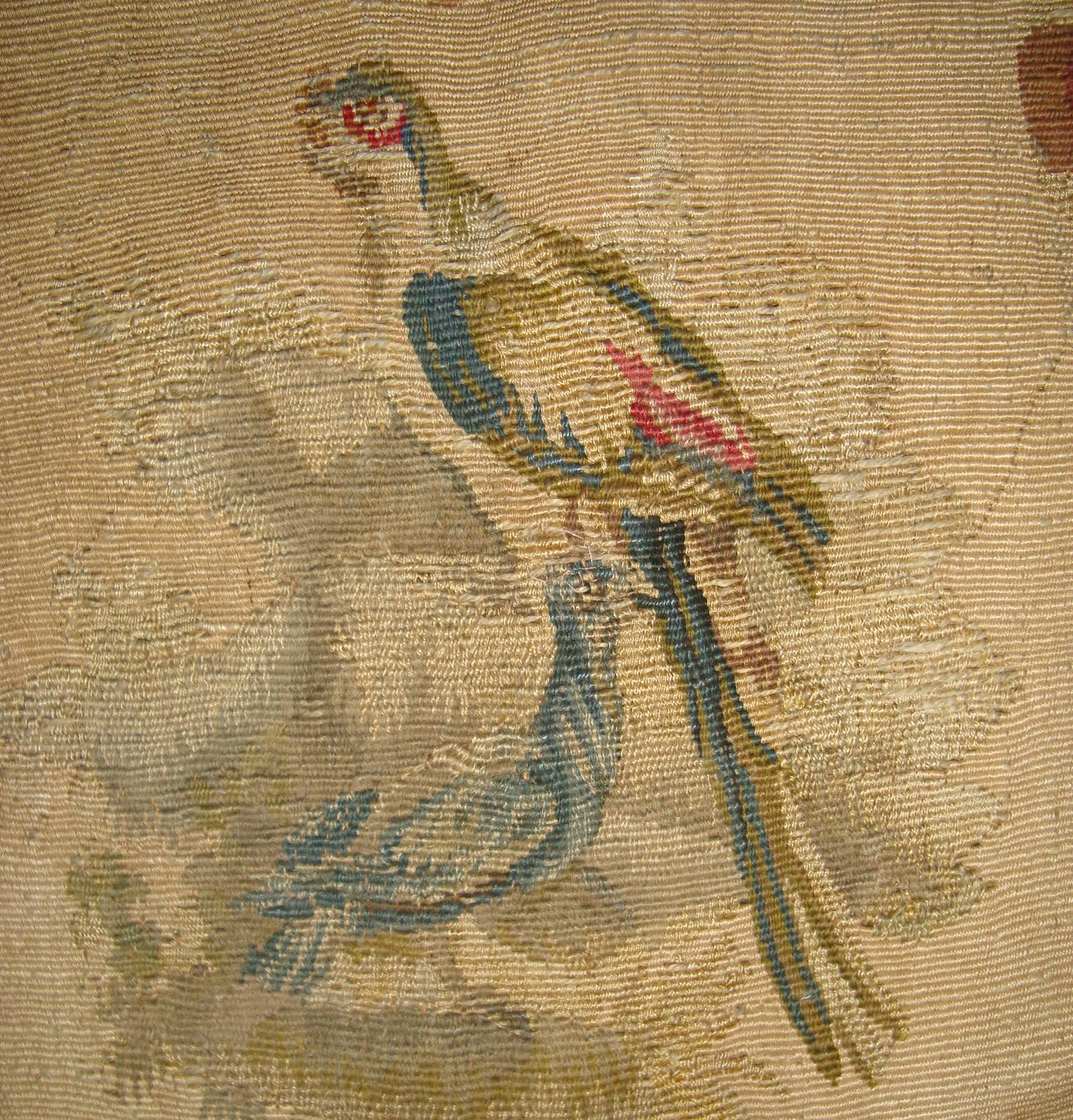 The tapestry is woven in fine wool and silk on a linen warp. A few weft threads have rotted away here and there, but these can be restored as the weft is intact. I am selling these via my ebay shop, the listings will come on this evening.